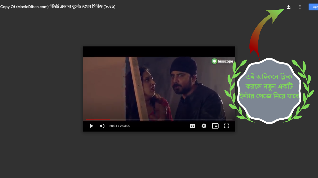 একটু লক্ষ্য করলে দেখতে পাবেন তীর চিহ্ন দিয়ে একটি ডাউনলোড আইকন দেখানো হয়েছে | এই ডাউনলোড আইকনটিতে ক্লিক করলে আপনাকে নতুন একটি ইন্টারপেজ এ নিয়ে যাবে | (beauty and the bullet all episode download)