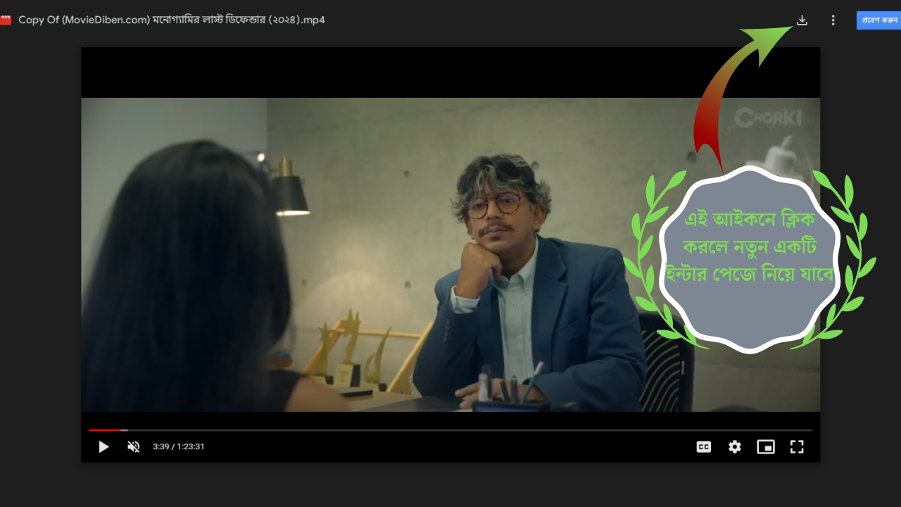 এই যে গোল প্লে বাটনটি তীর চিহ্ন দেখতে পাচ্ছেন, এখানে ক্লিক করলে অনলাইনে মুভিটি দেখতে পাবেন এবংডাউনলোড করতে পারবেন | এই মুভিটি অনলাইনে দেখার জন্য অবশ্যই আপনার ইন্টারনেটের স্পিড ভালো হতে হবে| ইন্টারনেট স্পিড টি ভালো হলে অনলাইনে মুভিটি ক্লিয়ার দেখতে পাবেন |